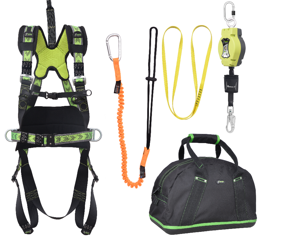 • Het harnas heeft 4 gereedschaphoudergespen en 3 gereedschapsdraagring op de gordel voor het aanhaken van karabijnhaken en accesoires.