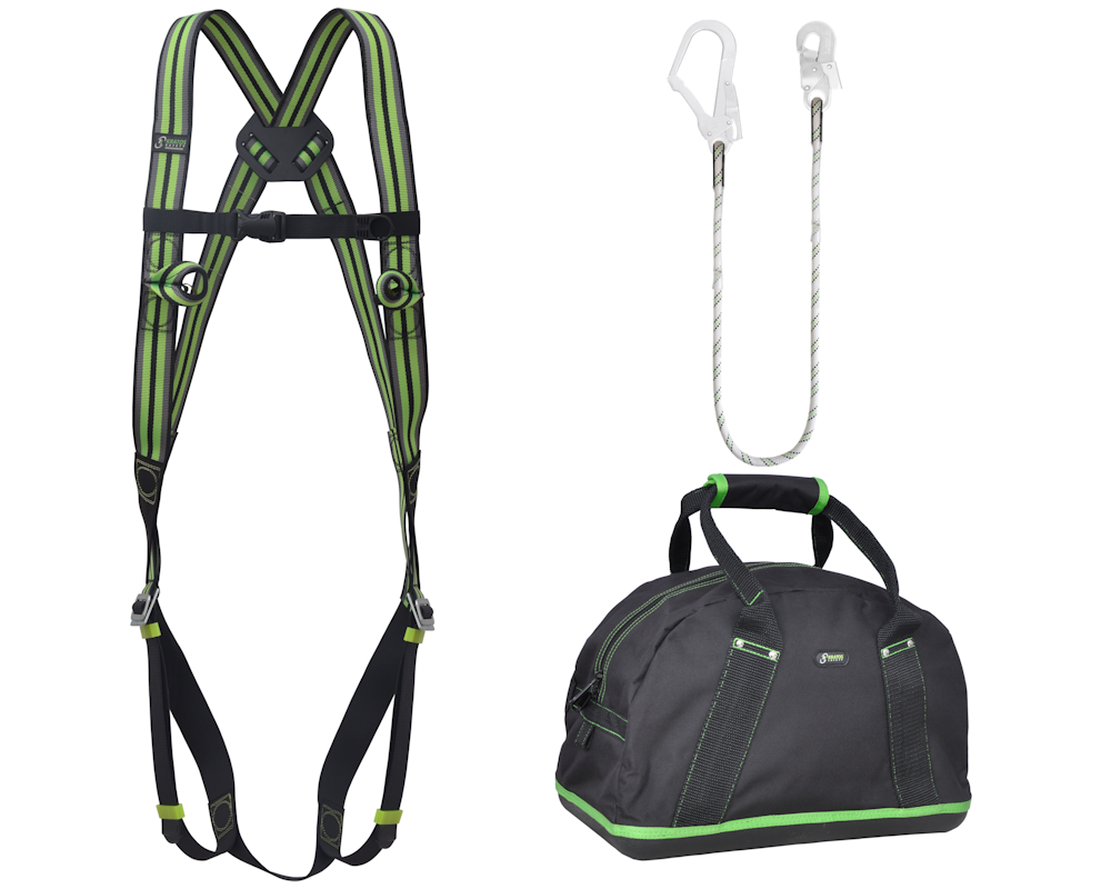 De Valbeveiliging Basic steigerbouwset is een basis valbeveiliging set voor gebruik in de steigerbouw. Het harnas is voorzien van ankerpunten aan de voorzijde en de rugzijde. deze complete set wordt geleverd in een rugtas