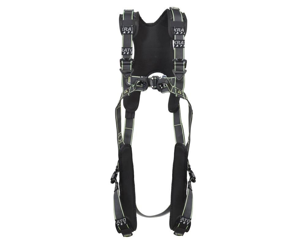 • 2 aanhechtingsringen voor veiligheidslijnen op de schouderbanden en voorzien van extra textiel versteviging die zorgt voor een beter comfort van de gebruiker en het in zich opnemen van de schok bij een val.