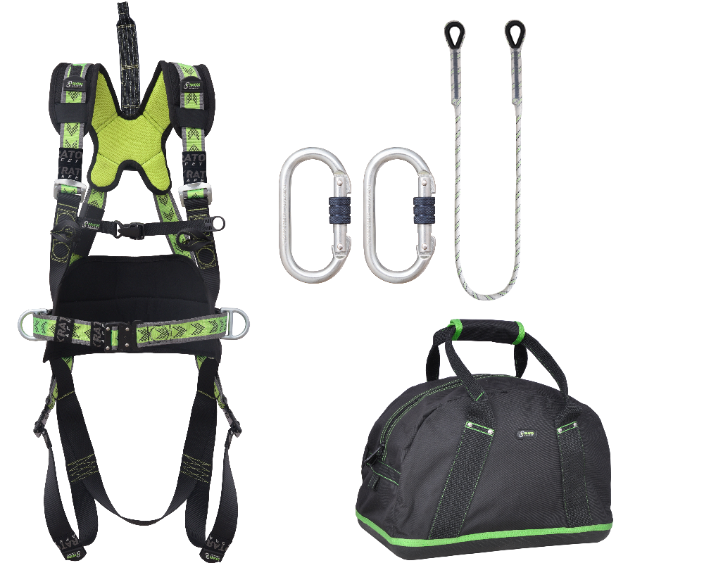 Kratos harnas werkpositioneringslijn 2 bevestigingspunten FA1020400A/1A• Het harnas heeft 2 bevestigingspunten, 2 textiellussen op de borst en een dorsale D-ring op de rug en 2 laterale lussen op de heupen van het lichaam.• Volledig verstelbare schouderbanden, beenlussen en gordel.• Het harnas heeft onderscheid gemaakt tussen de schouders en benen door middel van 2 verschillende kleuren.• Het harnas heeft 4 gereedschaphoudergespen en 3 gereedschapsdraagring op de gordel voor het aanhaken van karabijnhaken en accesoires.• Beschikt over een extensieriem, hiermee kun je je gemakkelijk vastmaken aan de dorsale D-ring aanhechting zonder hulp.• Dit harnas is beschikbaar in de universele maat. (zie maattabel).• Dorsale bescherming is optimaal comfortabel.• Het harnas heeft op de gordel en de beenlussen automatische gespen.• Geschikt tot maximaal 140 kg voor regelmatig gebruik.• Gewicht: 2.01 kg• Normering: EN361:2002 / EN358:2000