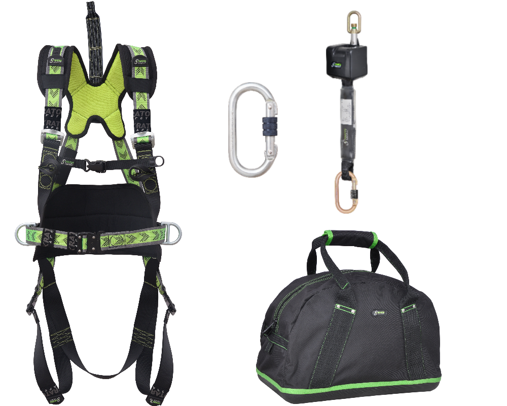 • Het harnas heeft 4 gereedschaphoudergespen en 3 gereedschapsdraagring op de gordel voor het aanhaken van karabijnhaken en accesoires.