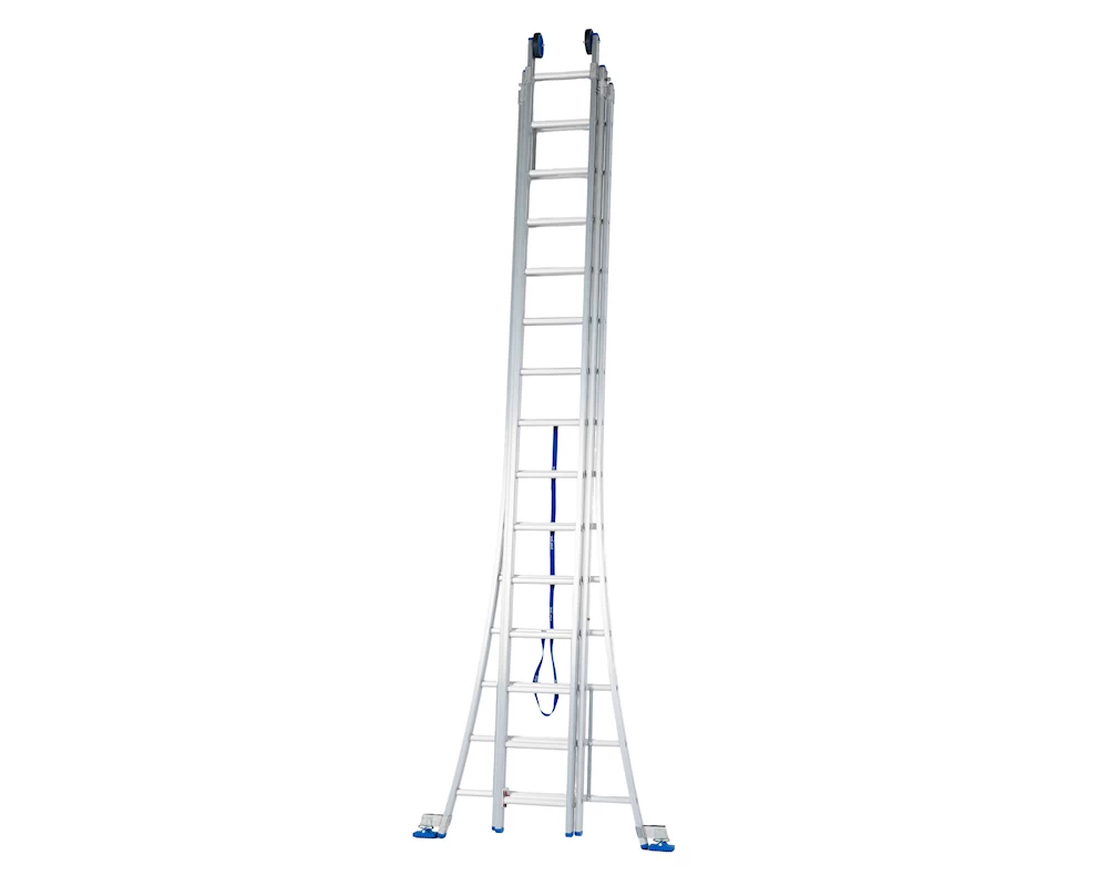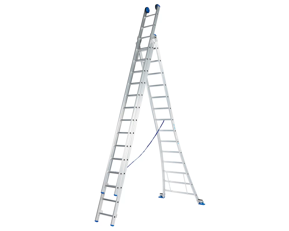 De Solide Bouwladder 3×14 is een stevige drie-delige reformladder van aluminium. Ideaal voor bereik op grotere werkhoogtes. Deze ladder voldoet aan EN 131, NEN 2484 en heeft VGS- en Warenwet-keuring, met 10 jaar garantie.