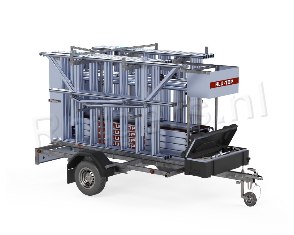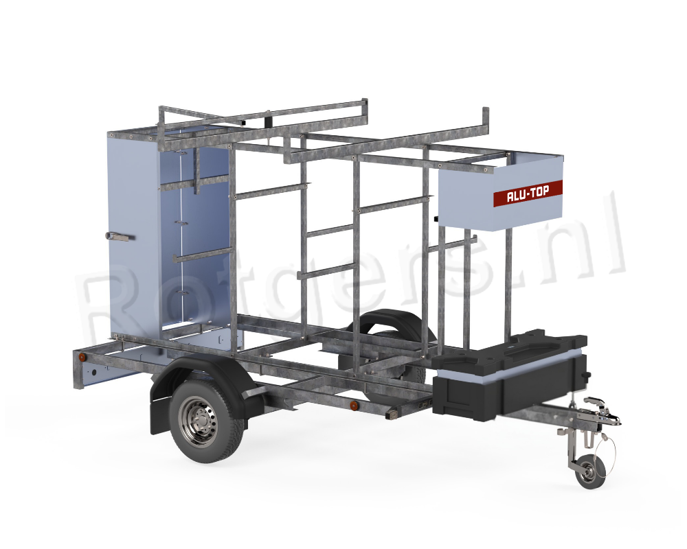 Steigeraanhanger 250 afsluitbaar• Geschikt voor steigers met een lengte van 2,50m,• Ruimte voor steigers tot 12,2m.• Volledig afluitbaar.• Thermisch verzonken.• Ongeremde aanhanger, Incl. Europese type goedkeuring.