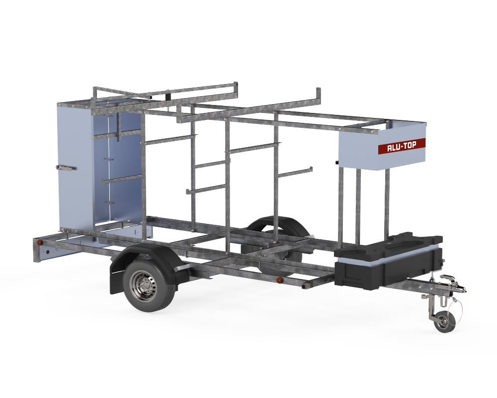 Steigeraanhanger 305 afsluitbaar• Geschikt voor steigers met een lengte van 3,05m.• Ruimte voor steigers tot 12,2m.• Volledig afluitbaar.• Thermisch verzonken.• Ongeremde aanhanger, Incl. Europese type goedkeuring.